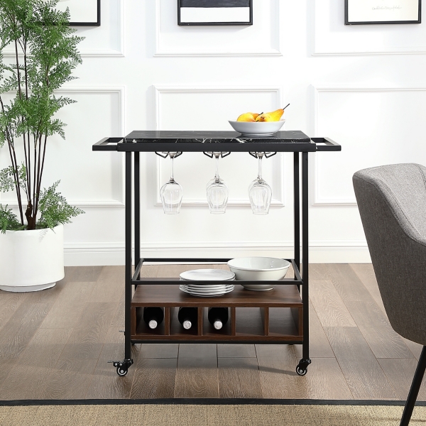 There's extra storage in this kitchen cart for up to four bottles of wine and 6 stemware. Shop for affordable bar carts online at target. Glacer industrial bar cart, retro style kitchen island on wheels, kitchen serving cart with lockable universal wheels, rustic brown and black, 28.5 x 16 x 36.5 inches (rustic brown) $89.99. 4.6 out of 5 stars with 11 ratings. Antiqued black finished textured metal frame.