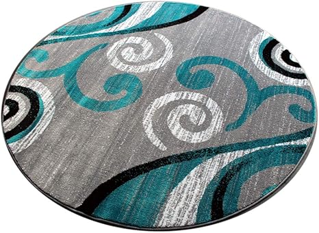 Masada rugs sophia collection hand carved round area rug modern contemporary turquoise gray black (5 feet 3 inch x 5 feet 3 inch) round.