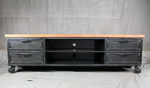 Tv stands & media consoles. • reclaimed wood and iron •100% handcrafted • rustic modern industrial styling • two drawers note: Rh members enjoy 25% savings and complimentary design services. We have already delivered this one to a client, but we would love to make one for you. Distressed textures and antiqued brass hardware are some of the attractive features of our modern media stands.